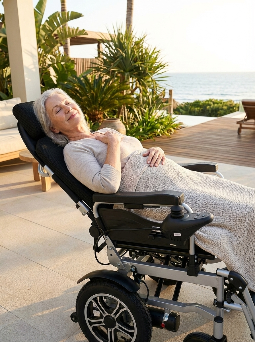 Sự ra đời của dòng xe lăn điện cao cấp có chức năng ngả nằm tự động chính là cuộc cách mạng trong việc chăm sóc người hạn chế vận động. Thay vì phải lên tiếng nhờ vả, người dùng hiện nay có thể chủ động biến hình chiếc xe thành một chiếc giường nằm êm ái chỉ với một nút bấm đơn giản trên cần điều khiển. Tính năng ngả lưng tới 180 độ đồng bộ với phần gác chân nâng lên cao giúp phân bố lại áp lực lên toàn bộ cơ thể, giải phóng vùng mông và lưng khỏi sự chèn ép liên tục. Điều này không chỉ giúp máu lưu thông ổn định để ngăn ngừa loét từ sớm mà còn mang lại sự tự chủ tuyệt đối cho người bệnh trong việc nghỉ ngơi, đọc sách hay ngủ trưa ngay tại chỗ.