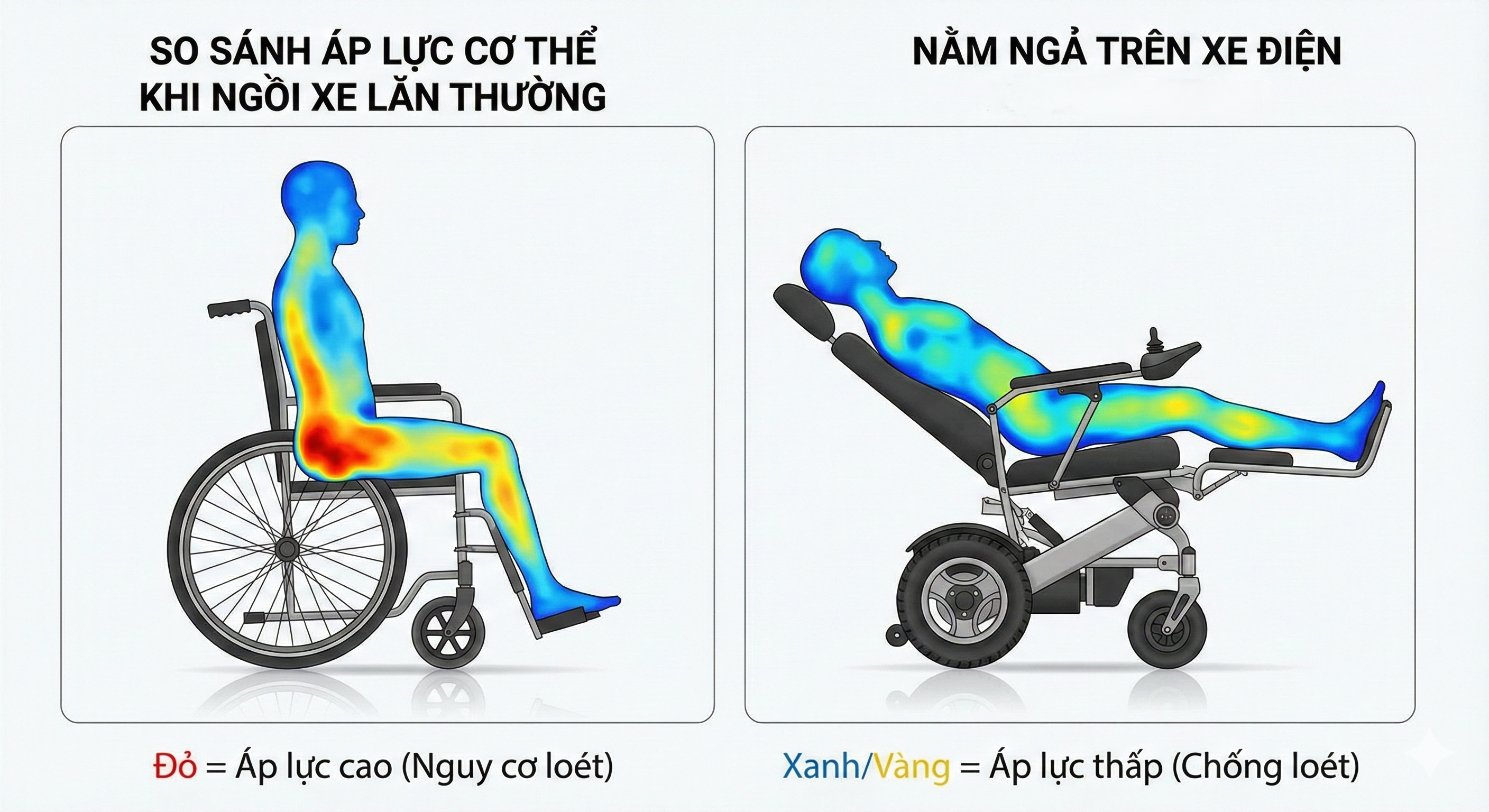 Đối với người tai biến, liệt nửa người hay người già yếu, chiếc xe lăn không chỉ đơn thuần là phương tiện di chuyển mà còn là không gian sinh hoạt chính suốt cả ngày dài. Tuy nhiên, việc duy trì tư thế ngồi cố định từ 4 đến 8 tiếng mỗi ngày tiềm ẩn những nguy cơ sức khỏe cực kỳ nghiêm trọng. Trong đó, chứng loét do tì đè chính là nỗi ám ảnh dai dẳng, không chỉ gây đau đớn tột cùng cho người bệnh mà còn vắt kiệt sức lực của người chăm sóc.