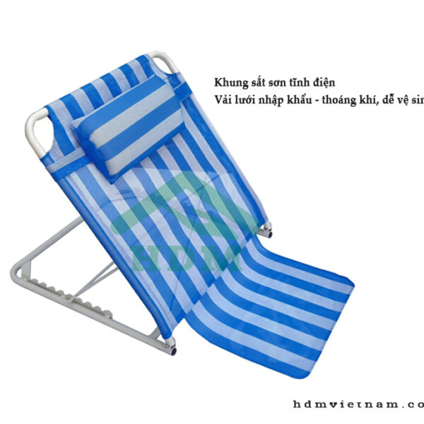 - Bục tựa lưng cho người già có 7 nấc chỉnh, có thể ngả từ 30 đến 80 độ tùy nhu cầu và yêu cầu về độ dốc của từng bệnh nhân